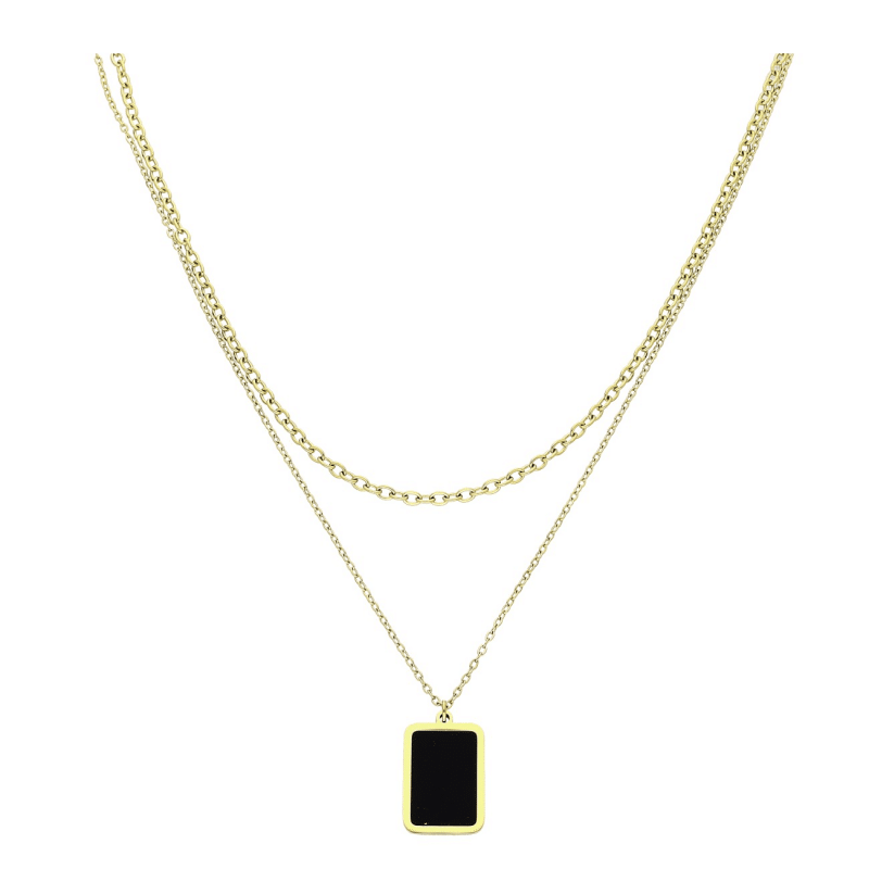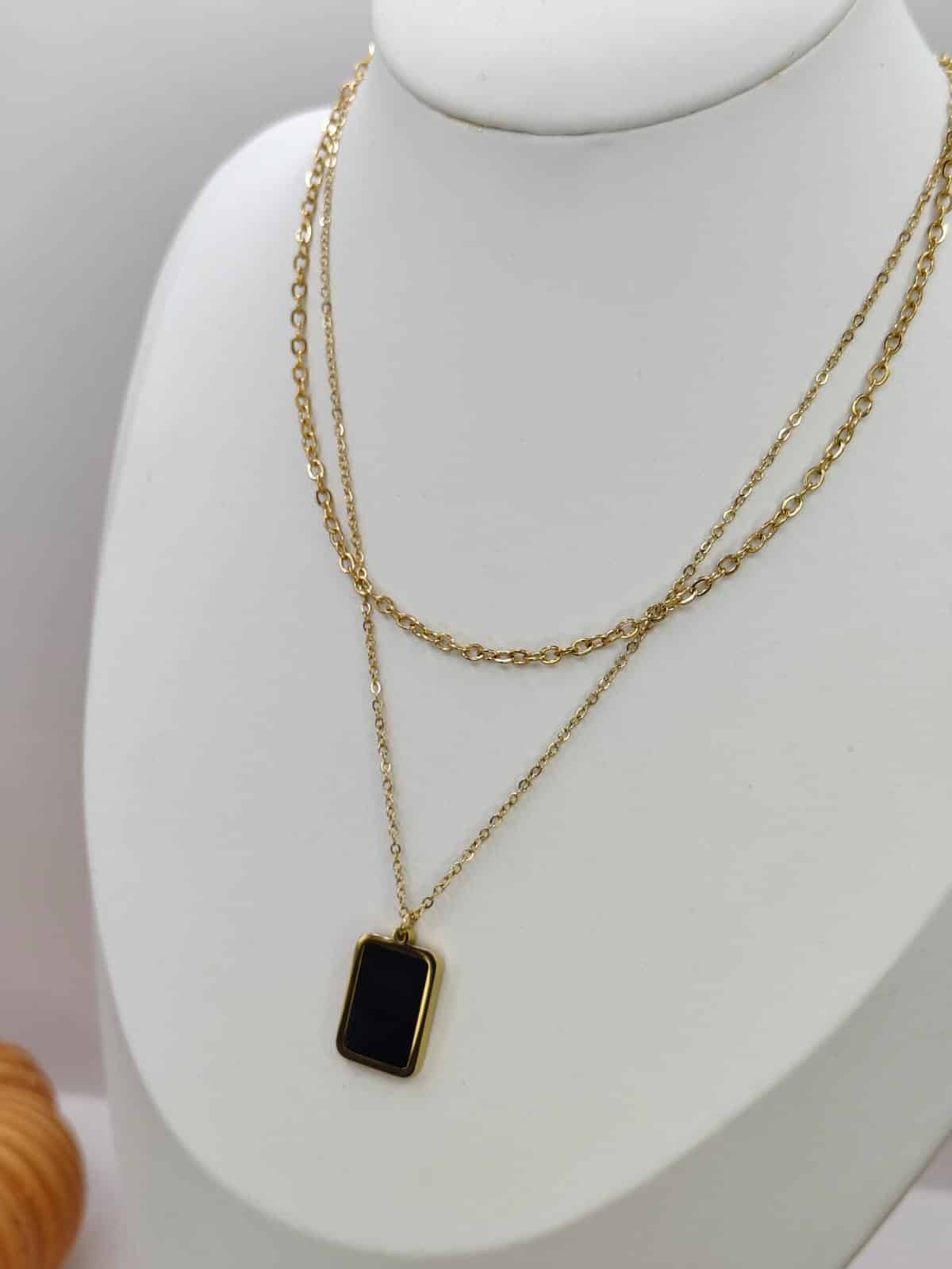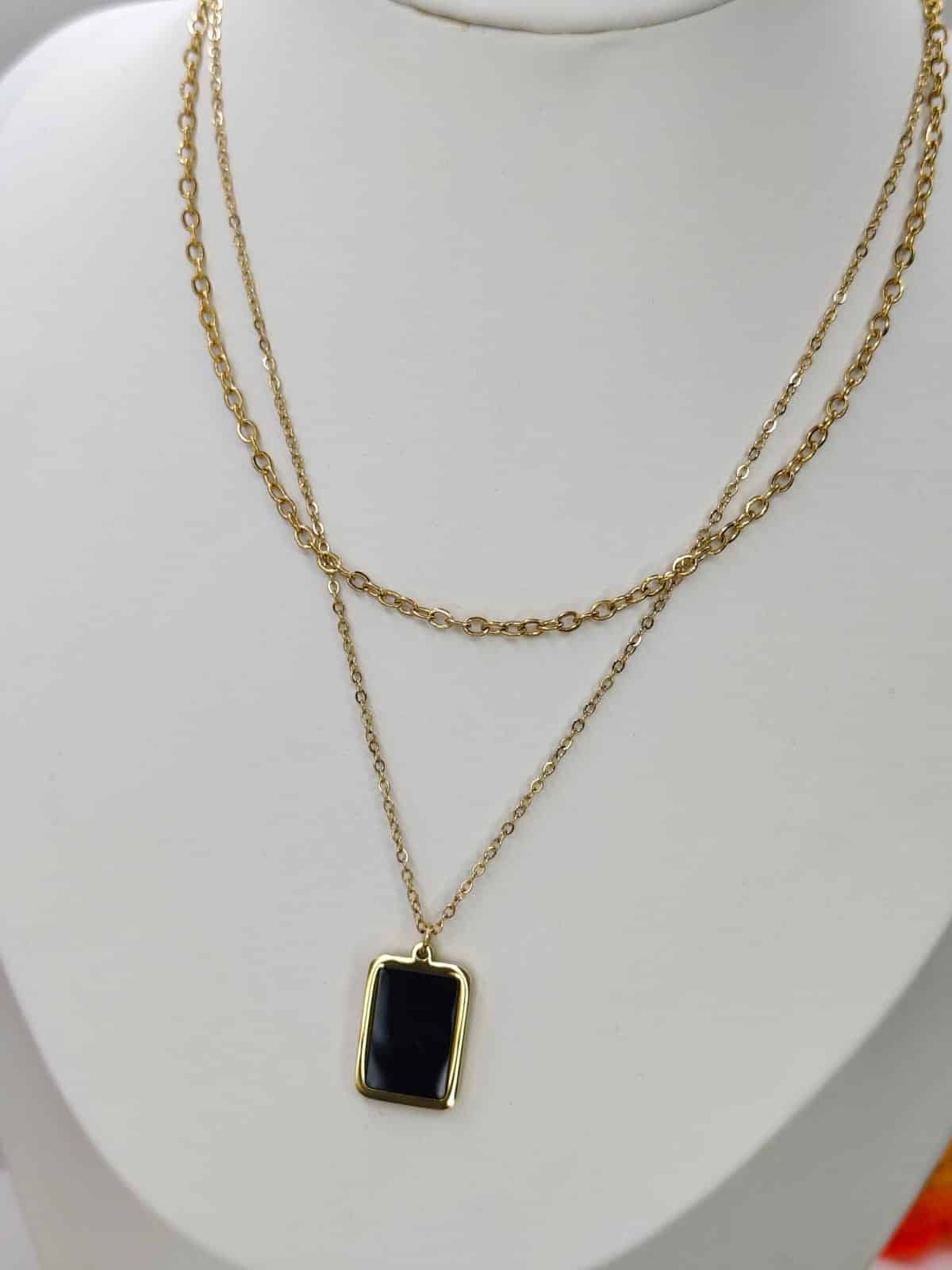 Celebrytka podwójna czarny kamień. Stal nierdzewna Xuping. 40+5cm