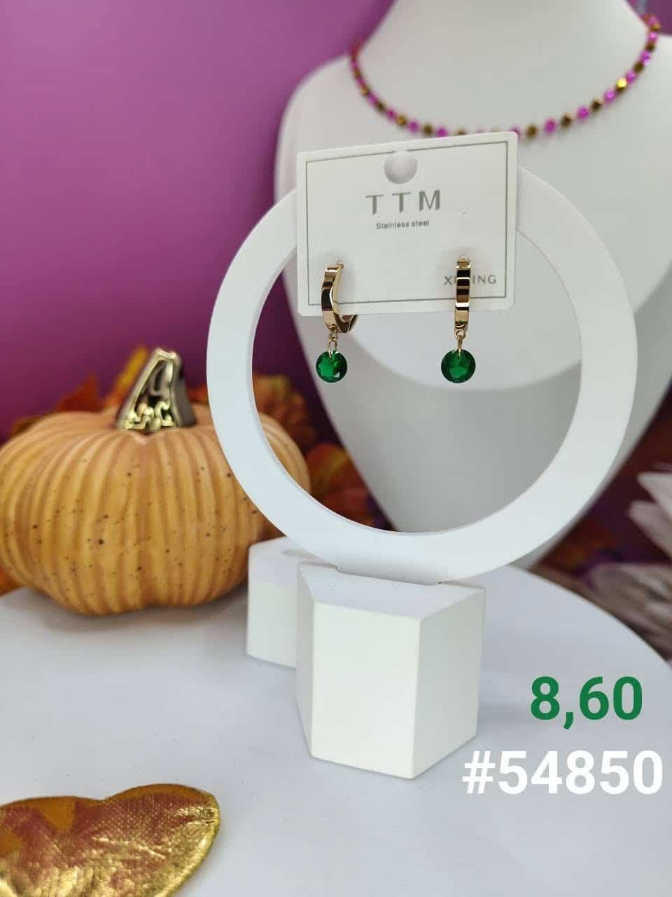 Kolczyki stal nierdzewna, pozłacane z zielonym oczkiem.