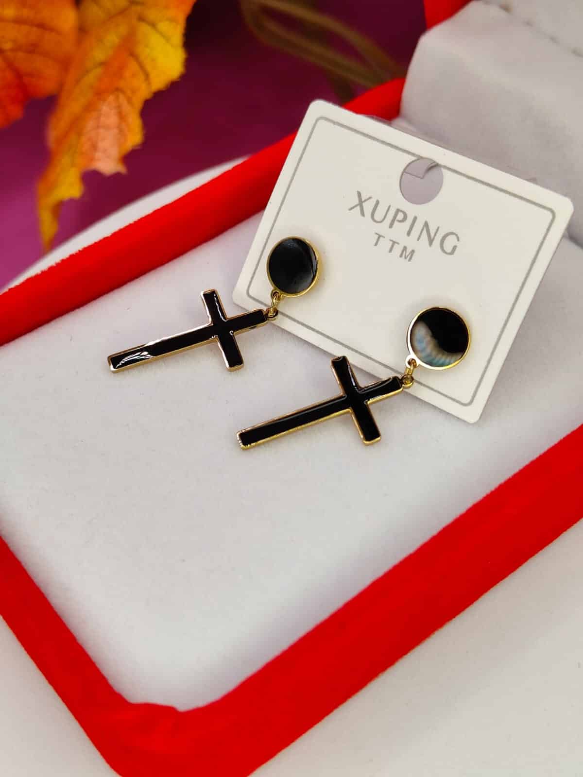 Kolczyki krzyż + monetka